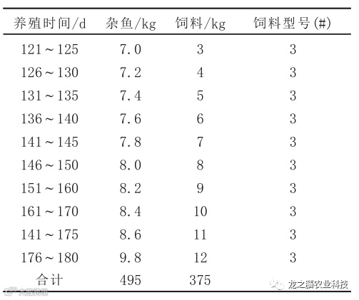 表 2 1 万尾澳洲淡水龙虾养殖中期饵料投喂