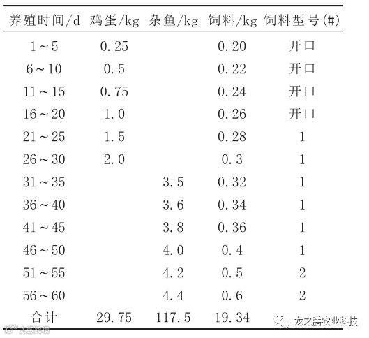 表 1 1 万尾澳洲淡水龙虾养殖前期饵料投喂
