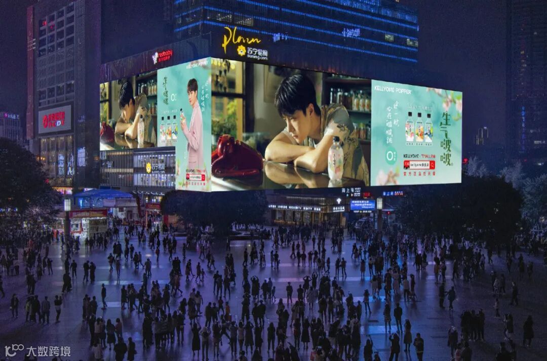 户外投放的大屏好大,比啵啵汽水铺的面积还大;