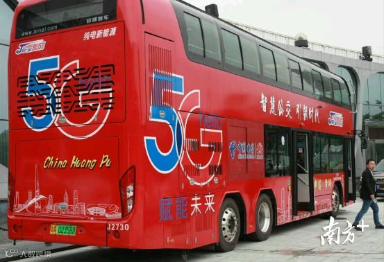 在展厅外部停放的珍宝5G巴士上,5G信号通过广州电信提供的首款5G商用终端,直接转换为WiFi信号。车上还可享受5G+4K高清IPTV,点播电视直播节目、高清电影全程无卡顿,快进快退零缓冲。“5G+高清视频会议”也是一大亮点。