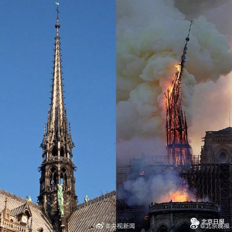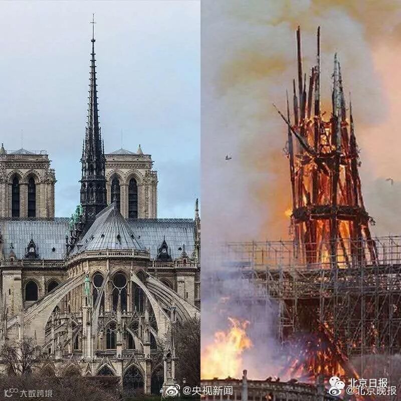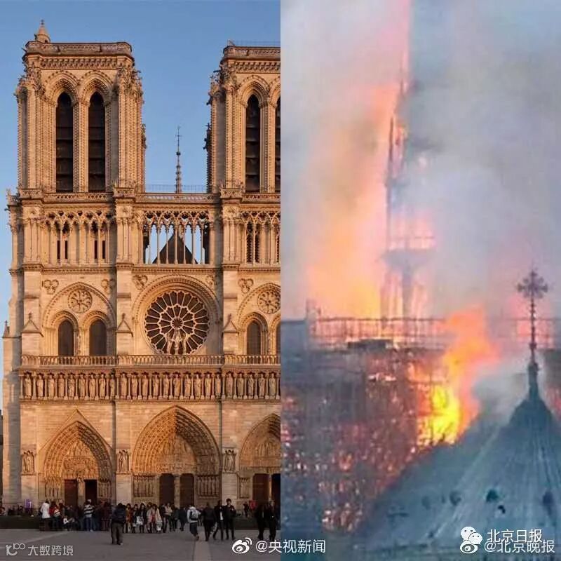 巴黎圣母院火灾前后对比图
