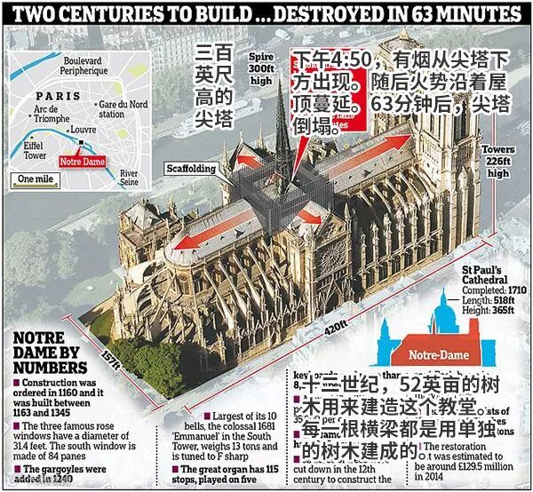 巴黎圣母院火势及外部结构图