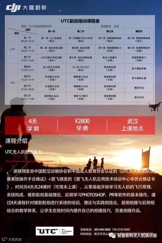 上面是航拍培训课程哦,心动了就来call我们吧!期待民用无人机能飞出更广阔的天地,为人们带来更多美好体验!