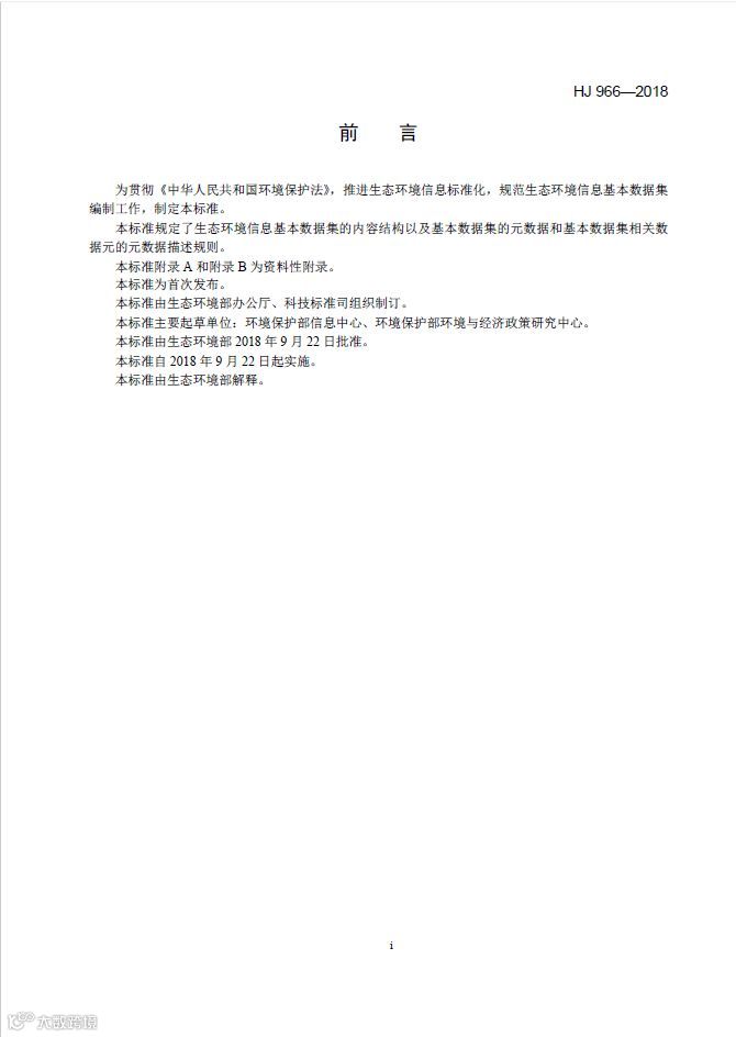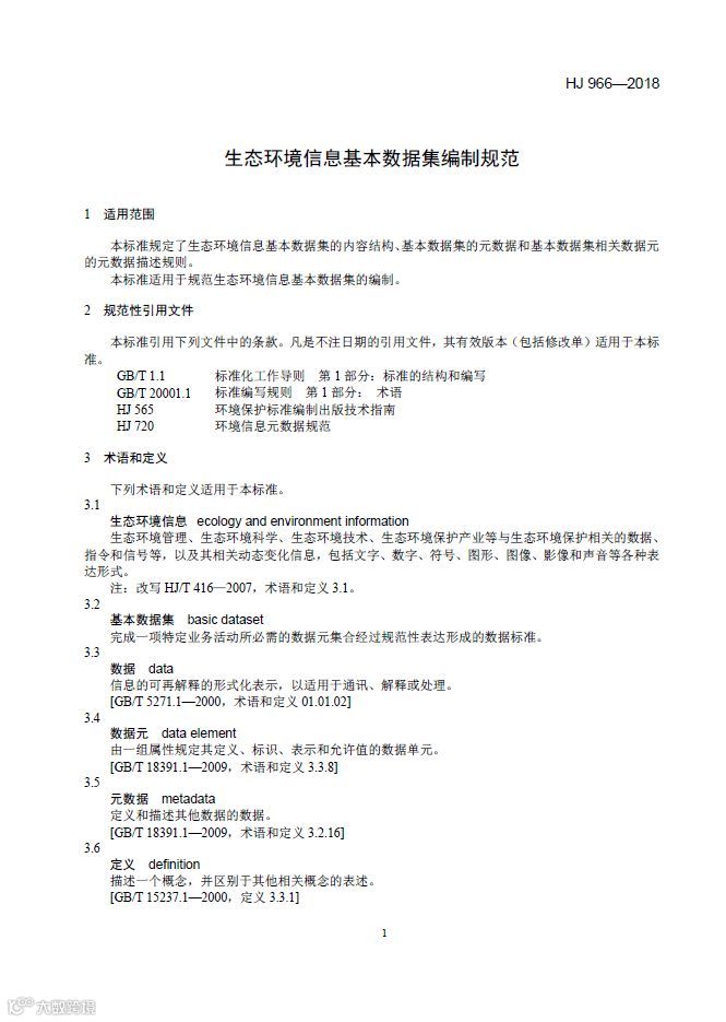 为贯彻《中华人民共和国环境保护法》,推进生态环境信息标准化,规范生态环境信息基本数据集编制工作,生态环境部近期印发了《生态环境信息基本数据集编制规范》(HJ 966-2018)。