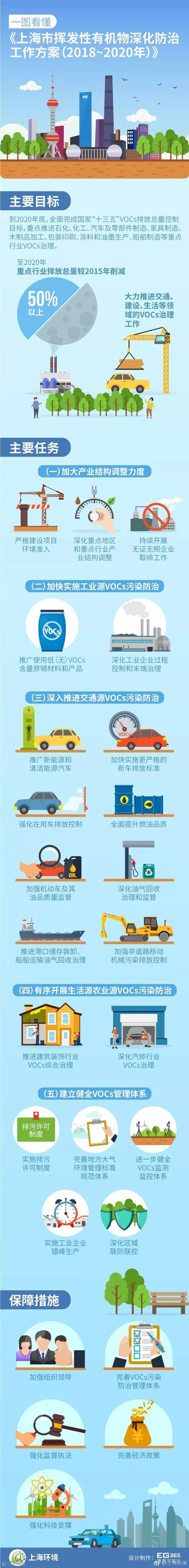 为深入推进本市挥发性有机物治理工作,全面提升上海市VOCs污染防治水平,改善城市环境空气质量,上海市环保局、市发改委、市经信委、市交通委、市住建委、市质监局等六部门制定了《上海市挥发性有机物深化防治工作方案(2018-2020年)》。