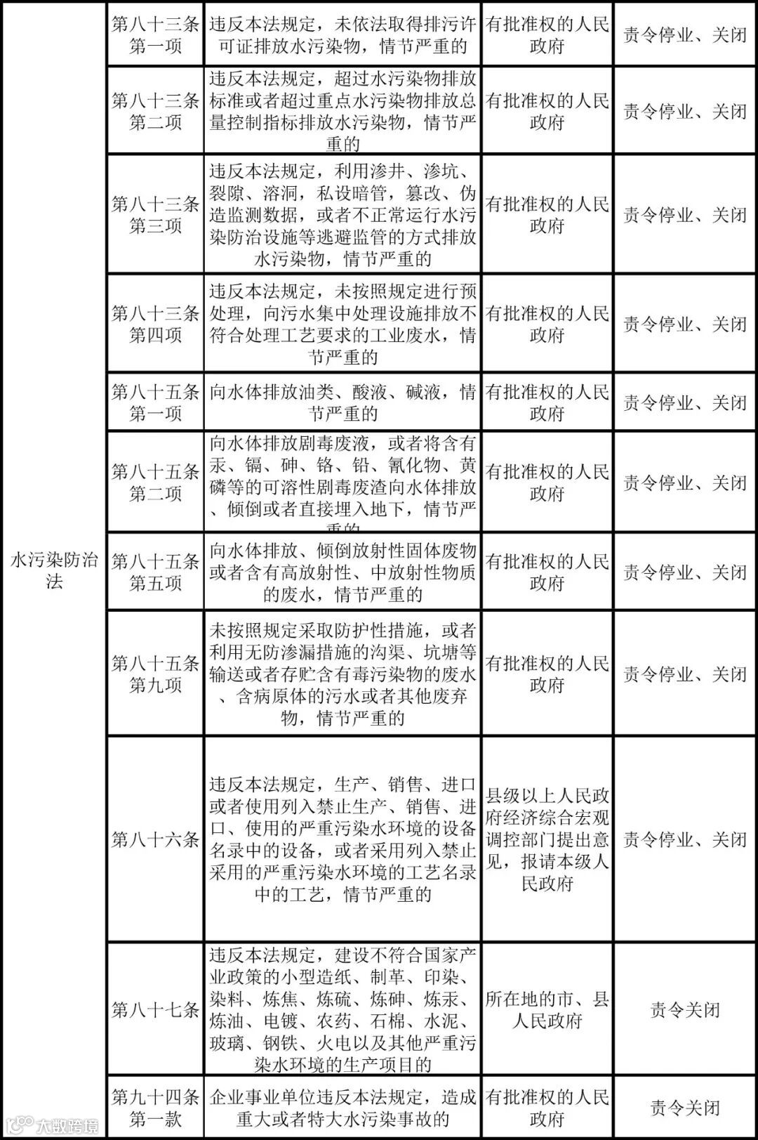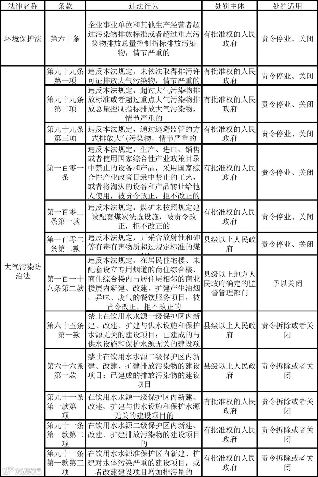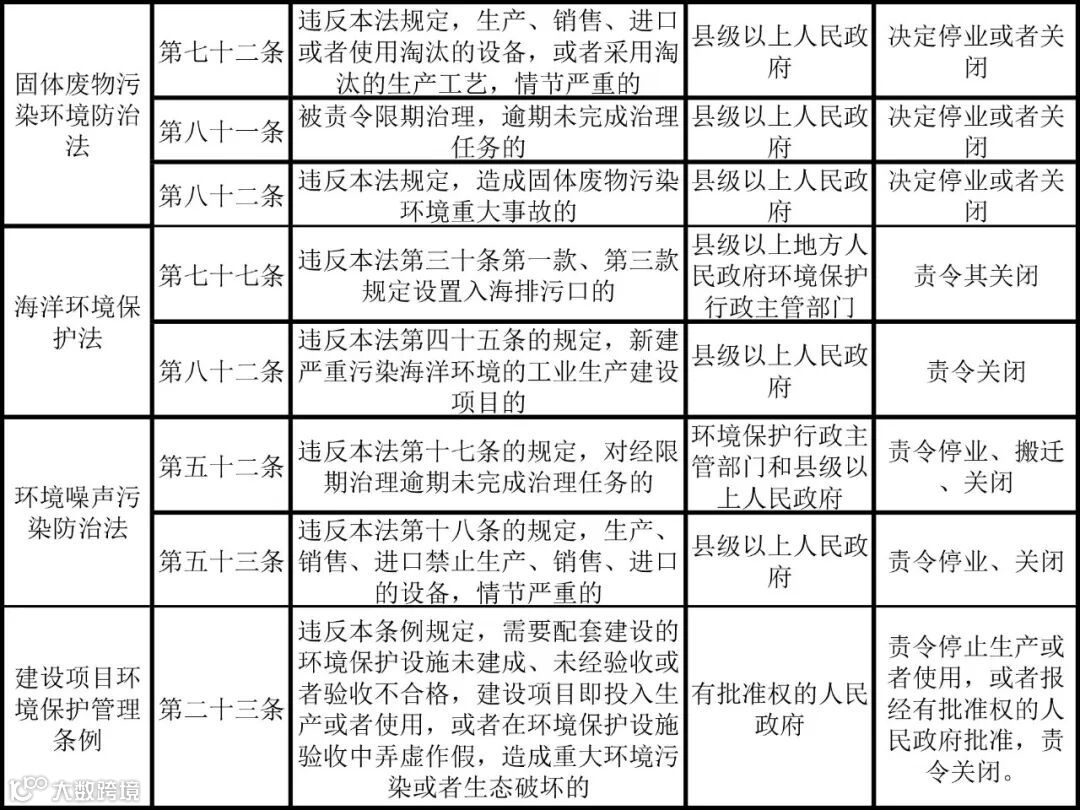 我国环境保护法律中关于关闭的主要规定