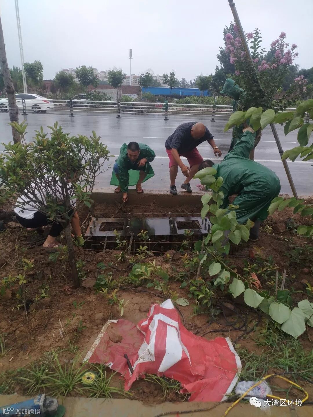 为了追赶工期,他们风雨无阻,披上雨衣,踏着泥泞,完成混凝土的浇筑。