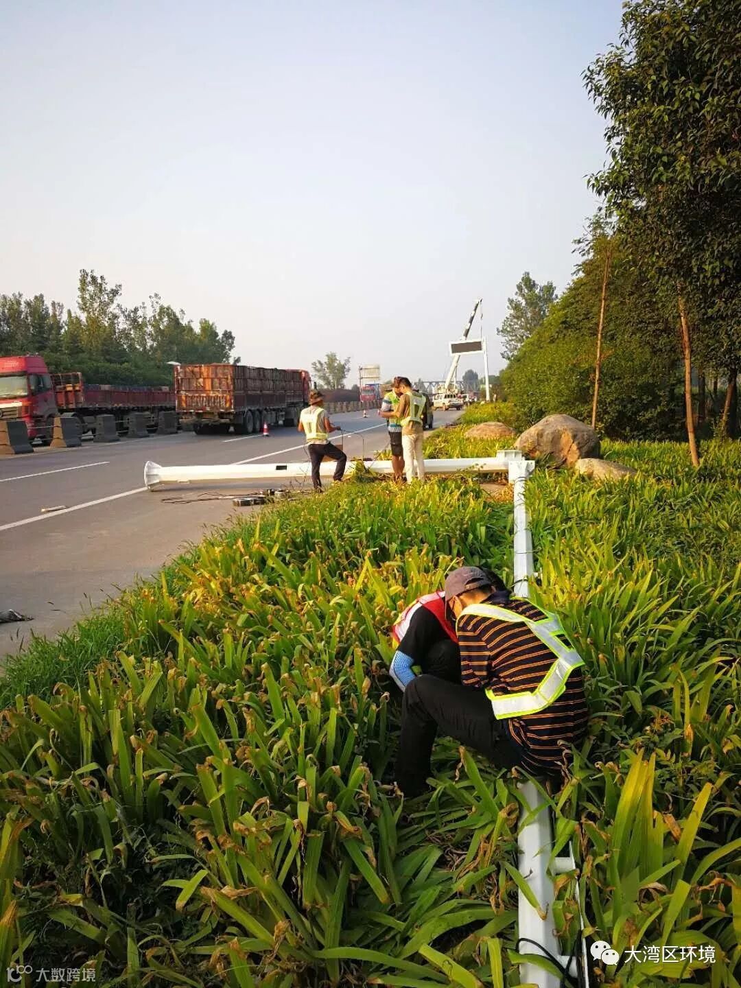 机动车尾气遥感检测项目的实施首先从选点开始。项目沿着入城的各个主要道路进行勘查,对合适的地点进行测量并记录相关数据。地点的选取不仅要符合国家关于汽车污染物遥感检测法的要求,也要考虑实际施工的可行性。此时河南正值盛夏,骄阳似火,马路上热浪袭人。每完成一个路段的勘查,项目团队的同事都已汗流浃背。