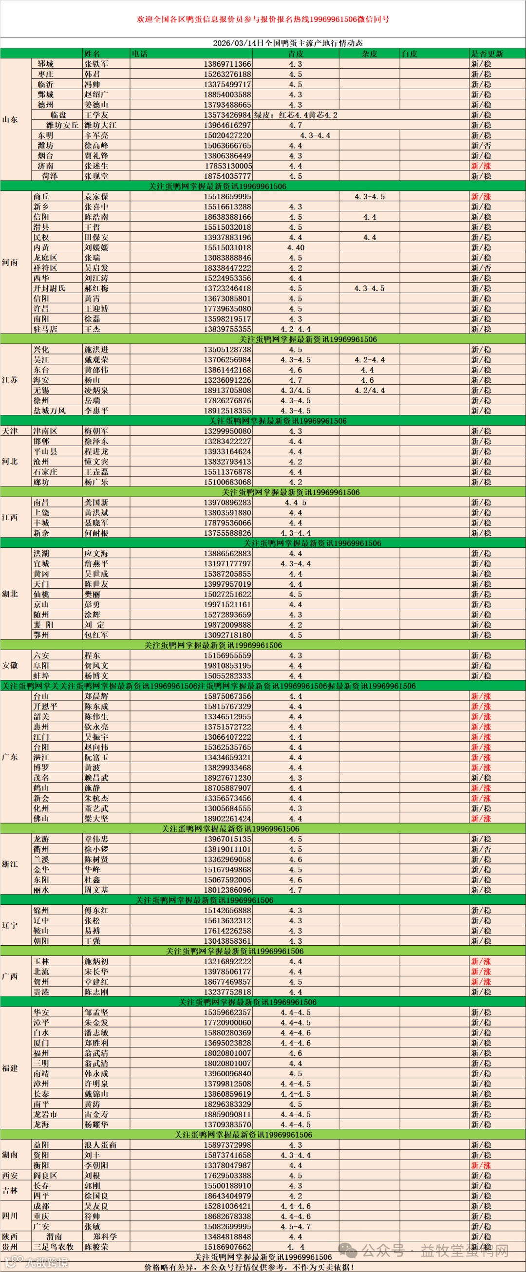 (由于地区、品质、市场需求差异,本报价仅供参考,实际成交请以当地实际价格为准)。