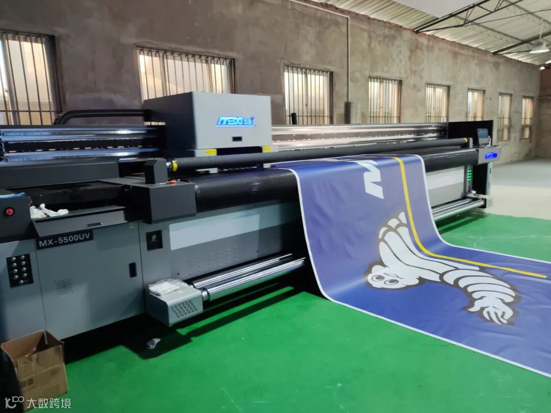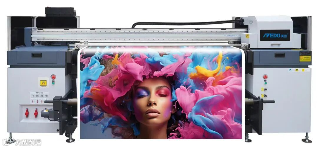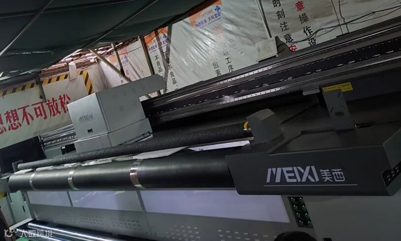 美西MX-5500HUV导带机,大画面工业级UV导带机,能够灵活适配卷料与平面材质打印,适配户外巨幅灯箱、建筑围挡、大型舞台背景、软膜天花批量生产。