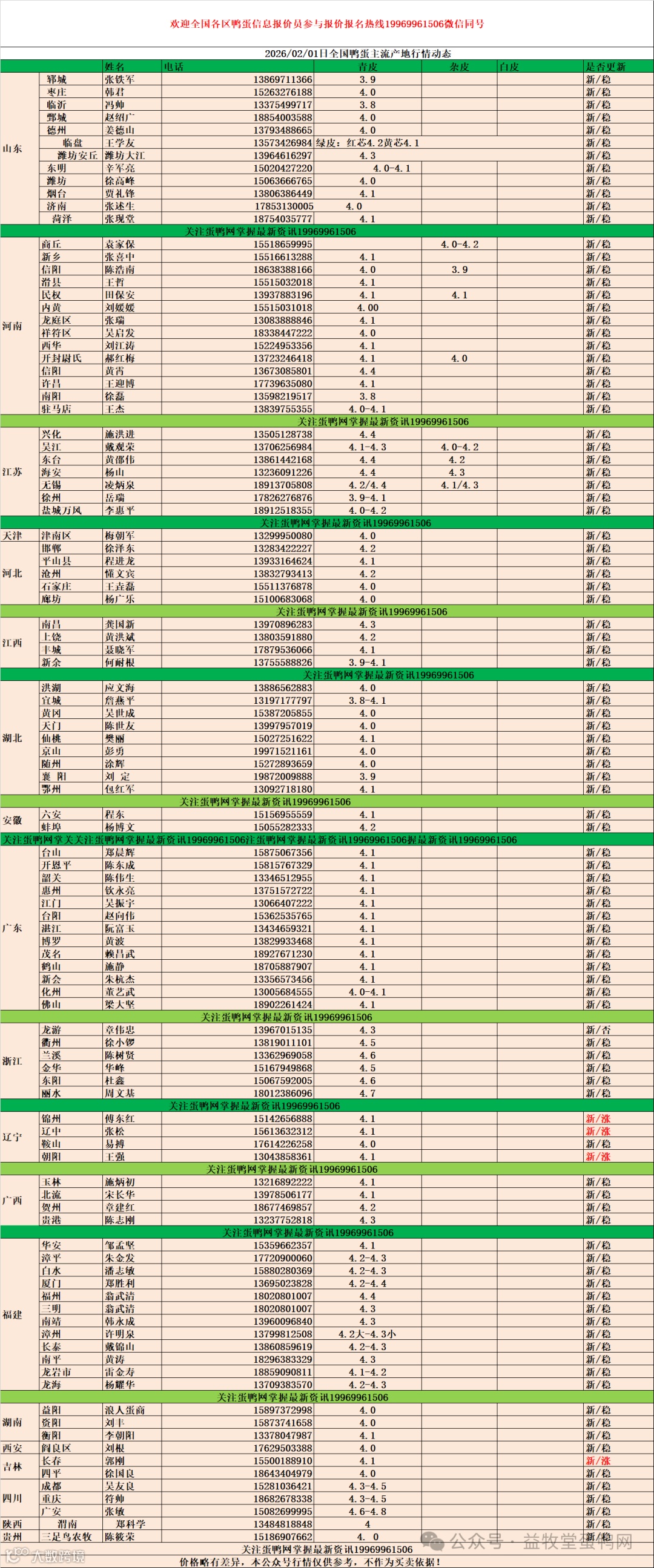 2026年2月1日商品鸭蛋报价 益牧堂水禽信息