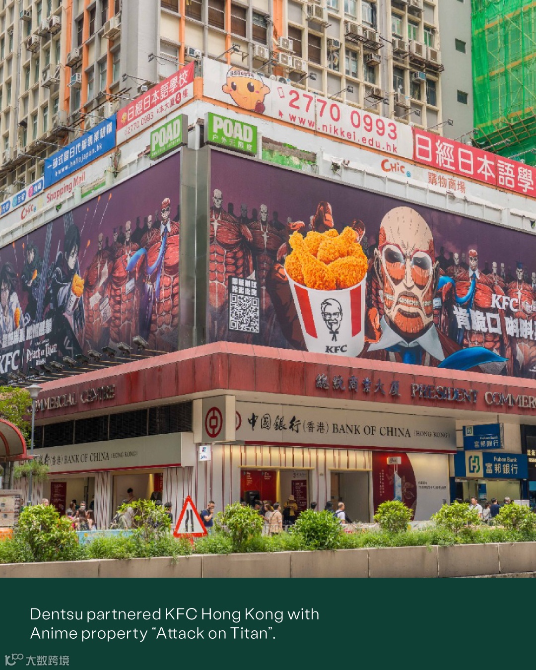 与此同时,肯德基(KFC)与电通旗下安布思沛(iProspect)合作,在香港市场推出了以动漫作品《进击的巨人:最终季》(Attack on Titan: The Final Season)为主题的品牌宣传和沉浸式店内活动,以创意、媒体和用户体验/用户界面等元素,描绘动画人物与肯德基炸鸡之间的互动。