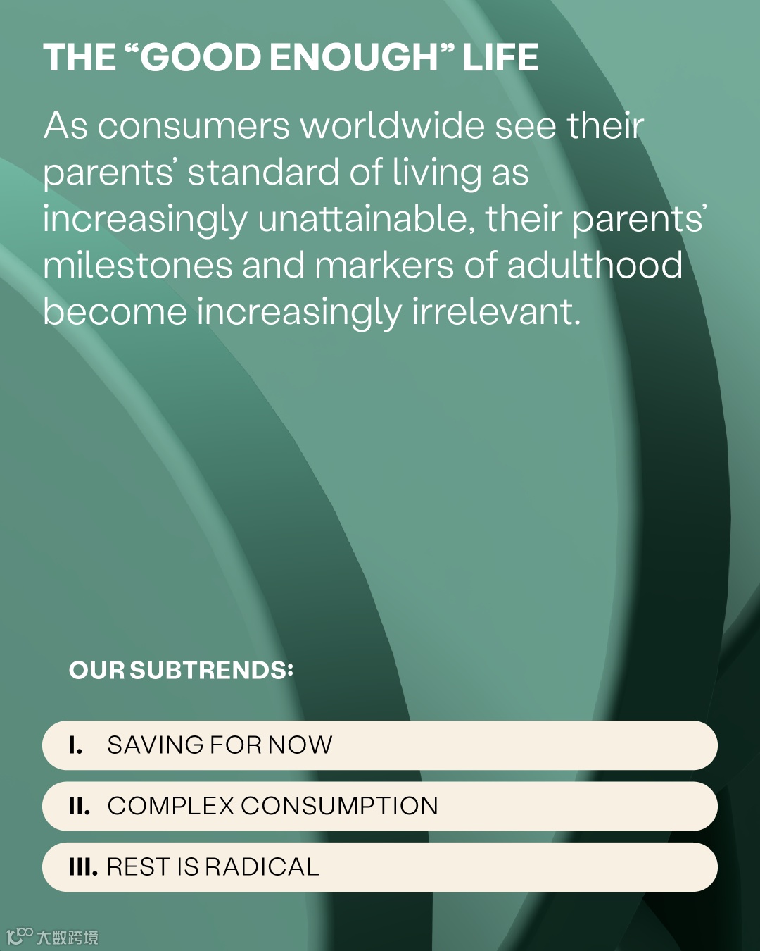 Across generations and markets, we see consumers redefining what they want in life, what counts as ‘aspirational’ and what constitutes ‘success’ on a planet in crisis. Within these trends we see three subtrends to unpack.