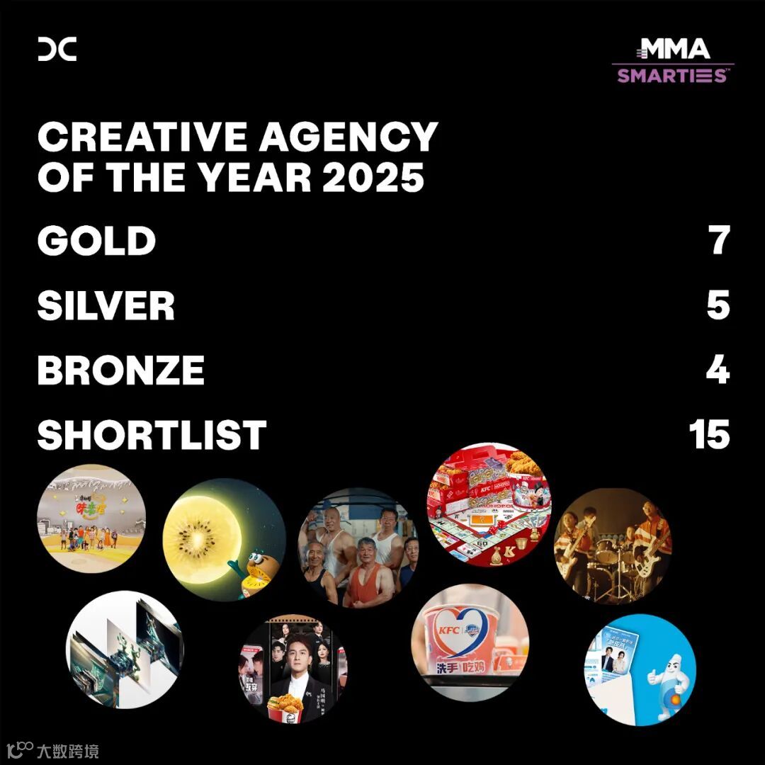 MMA SMARTIES CHINA 2025获奖名单揭晓,电通创意(DENTSU CREATIVE)继续蝉联,获得2025年度最佳创意代理商,同时赢得7金5银4铜以及15项入围。