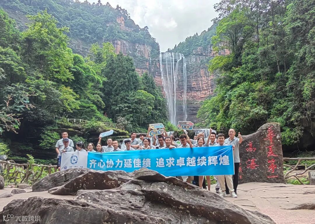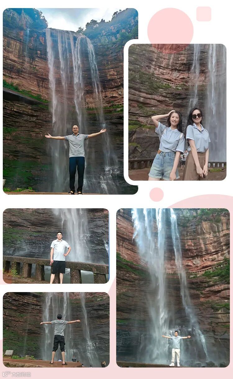 众人齐聚瀑布下方,打卡留影记录。