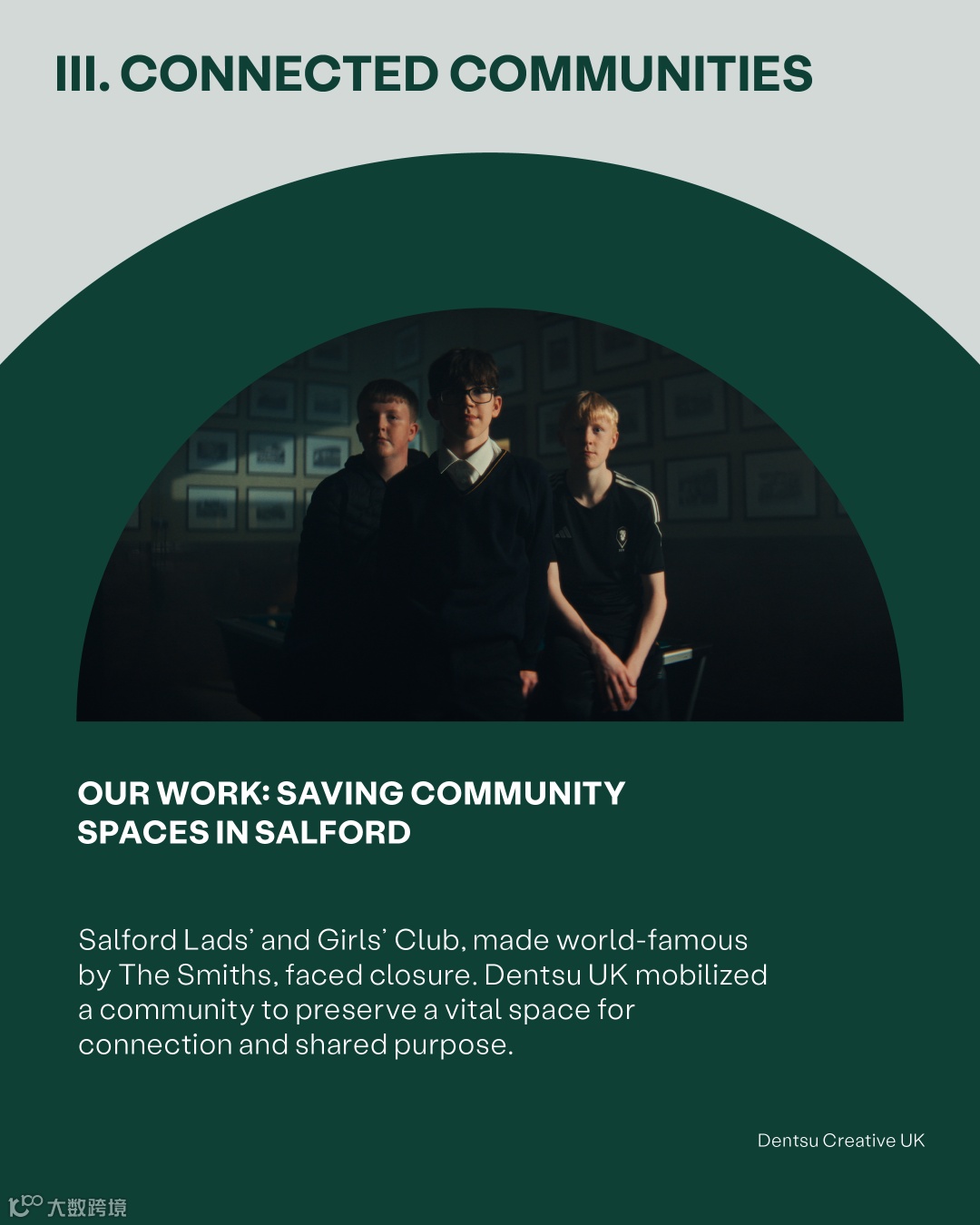 Salford Lads’ and Girls’ Club, made world-famous by The Smiths, faced closure. Dentsu UK mobilized a community to preserve a vital space for connection and shared purpose.
