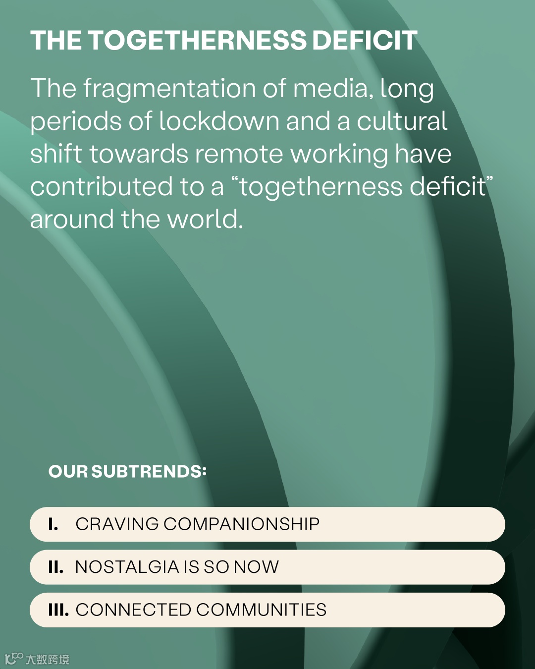 In a world where we are together less often in the physical space, togetherness through shared cultural understanding matters more than ever. Winning in the algorithmic era will mean connecting with consumers around shared passions and interests, as community becomes the new scale and the new connective tissue.