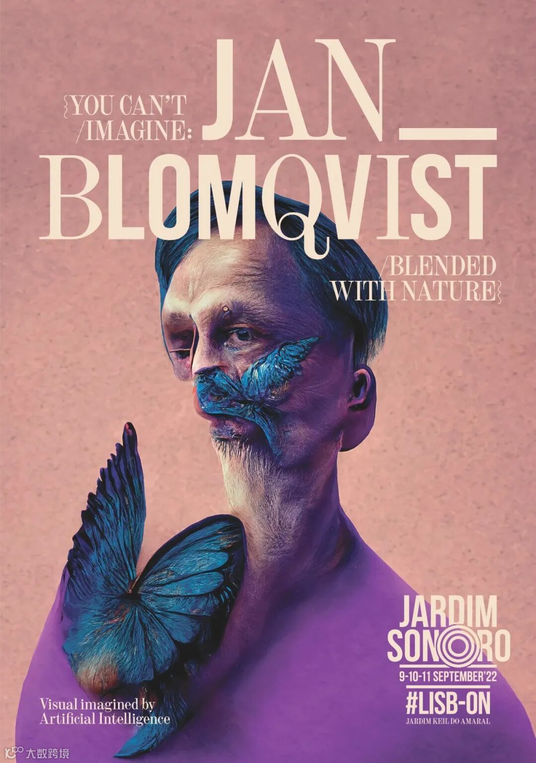 在机器学习与美术指导的并肩协作下,我们不断调整找到最完美的搜索关键词来精确化AI的输出,将音乐节演出艺术家的代表特征与鸟类、蝴蝶、叶子和树木的自然元素结合,打造出了美丽又奇幻的超现实主义图像。