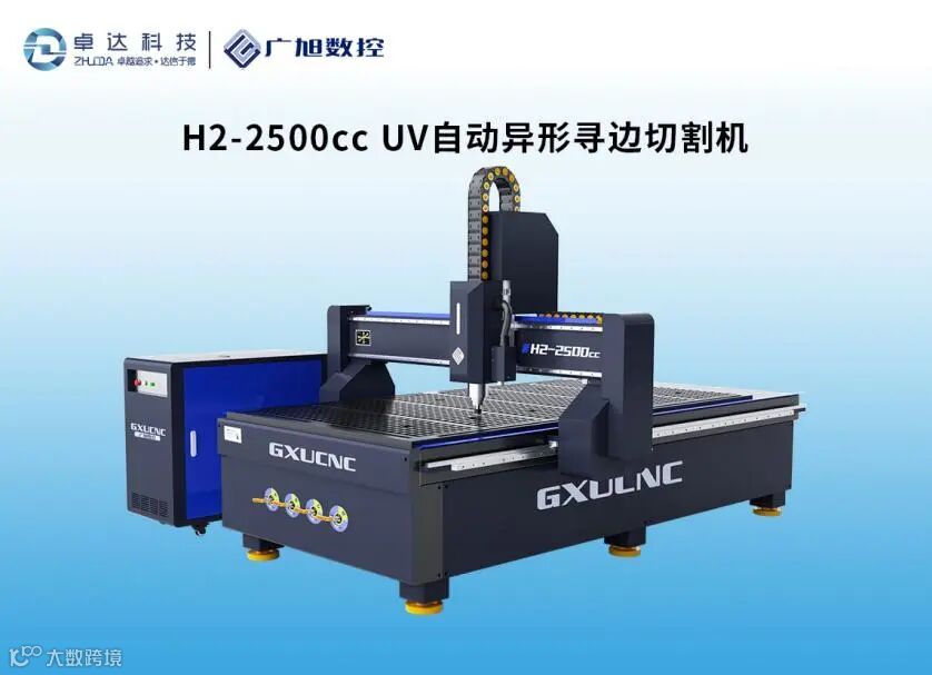 广旭H2 2500cc UV自动异形寻边切割机,1.3m x 2.5m的加工范围,拥有视觉定位功能,轻松实现精准定位切割。