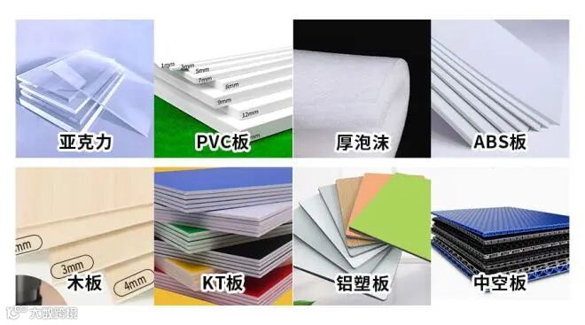同时拥有激光机和雕刻机的功能,能应对不同板材的加工,例如PVC、KT板、厚泡沫、铝塑板、中空板,还可以加工亚克力、木头、铝板、ABS板、绝缘板、电木板等不同软硬的材料,适用范围极其广泛。
