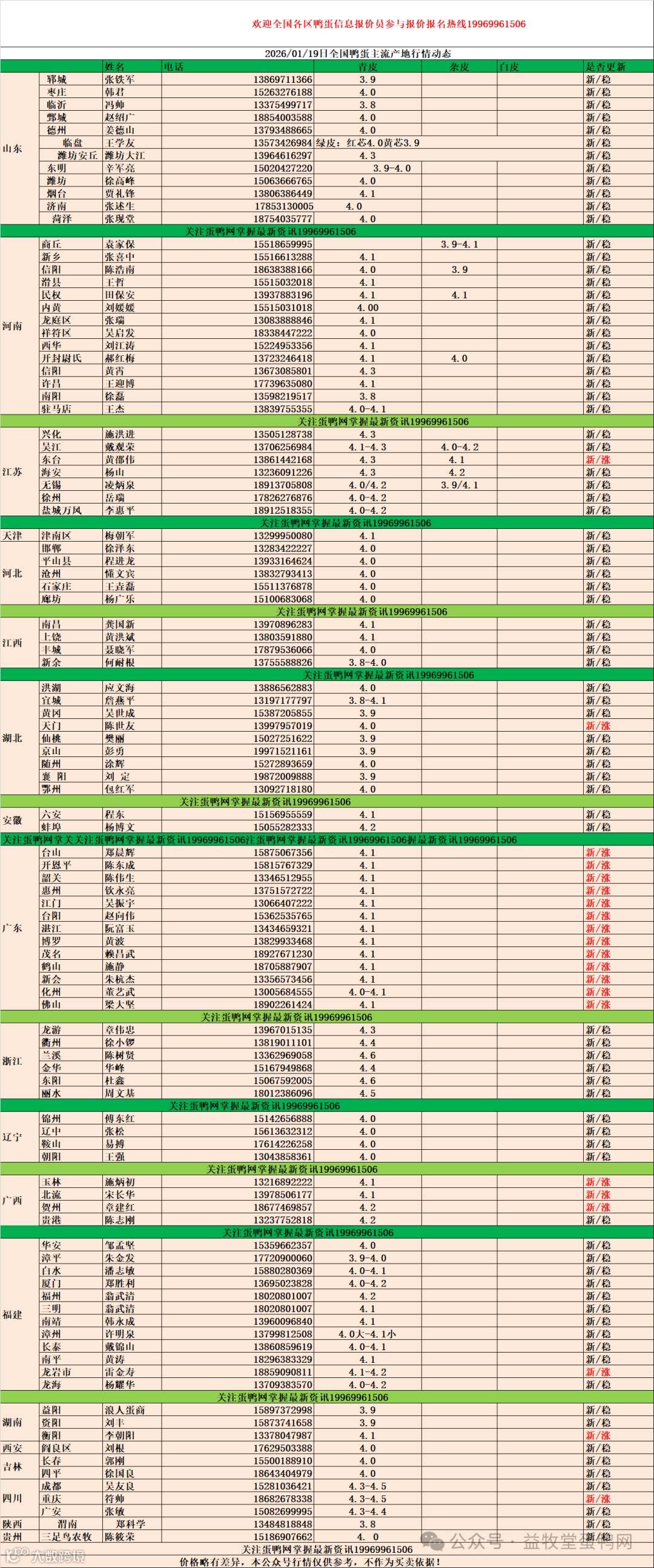 2026年1月19日商品鸭蛋报价 益牧堂水禽信息