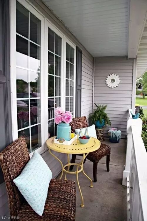 3、一般家里都会拥有类似这样一块并不大的阳台区域,小却也十分正气明亮,放得下别致的藤艺座椅、若干花草、精致小边桌……这便可以成就一间最接近户外的迷你咖啡厅。若更用心的装饰一番,便趋近完美了。