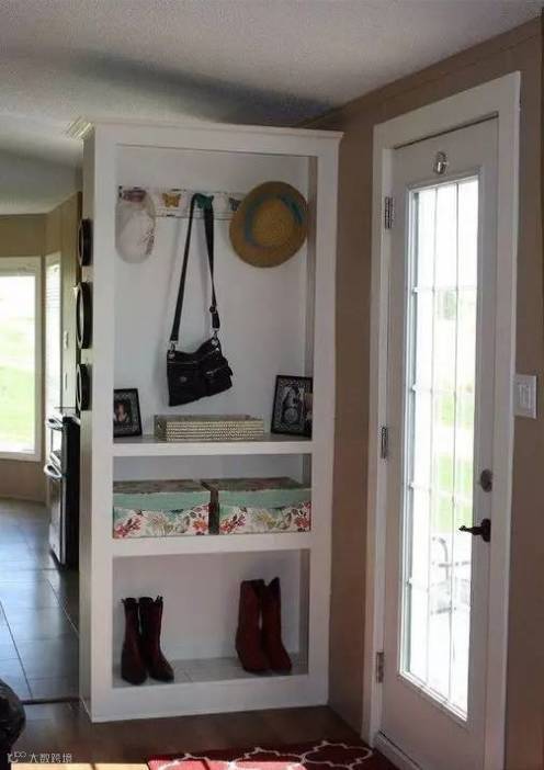 有些户型门后空间较大,可以安放置物架,
