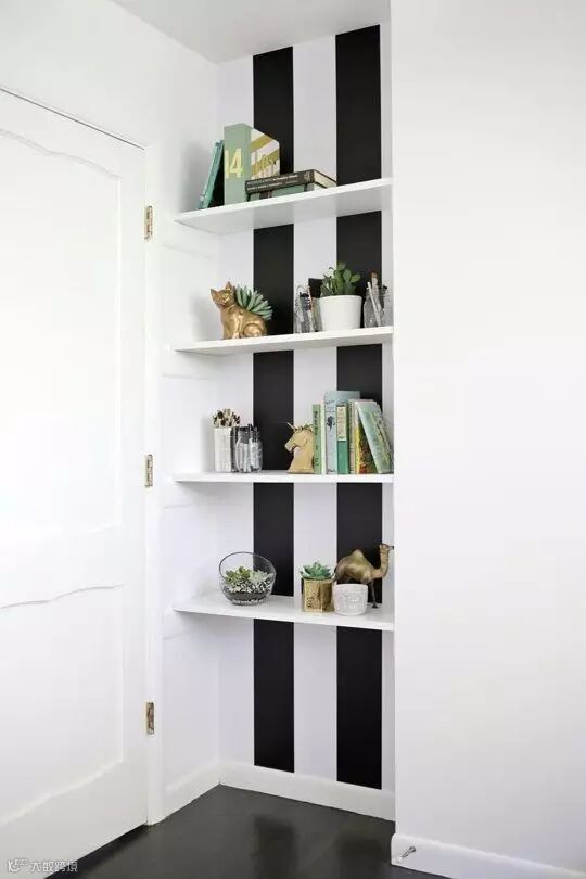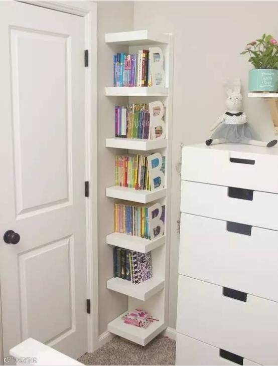 嵌入到墙里,仅仅需要几块隔板,不仅不占地方,还能收纳许多杂物呢!