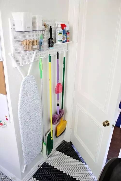 在厨房门后墙壁上,钉一块洞洞板,