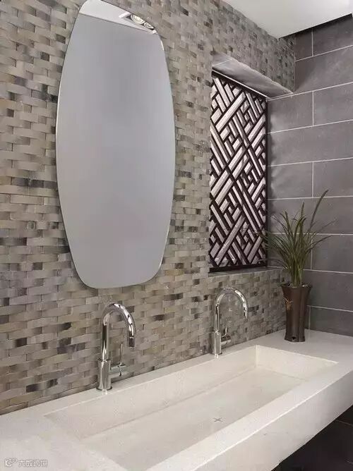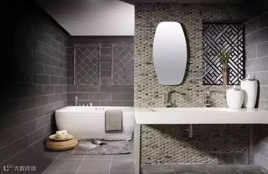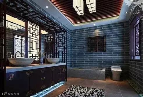 中国艺术类陶瓷种类繁多,有远近闻名的青花瓷,还有极具工艺特色的彩瓷、白瓷等中式陶瓷喜欢将传统的国韵艺术融入其中,如福禄寿喜组合,百鸟珍禽、梅兰菊竹等。当极具中式美感的装饰融入浴室的装饰当中呈现出的感觉有着富贵且典雅的景象。