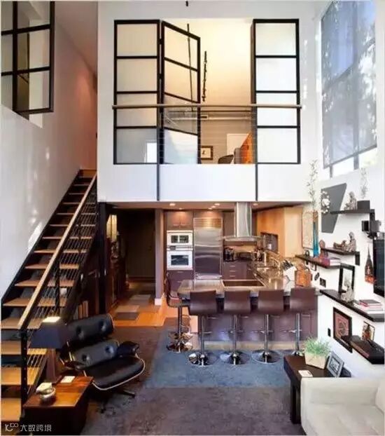 △黑色金属楼梯、栏杆创造出的工业风的世界,