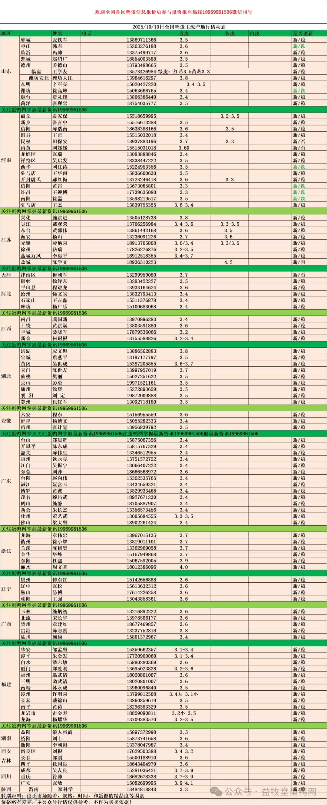 10月19日:初产至10个头2.7元,10个头至9个头3.0元,9个头至8个头3.1元。8个头至7.5个头3.4元,7.5个至大蛋3.6元。