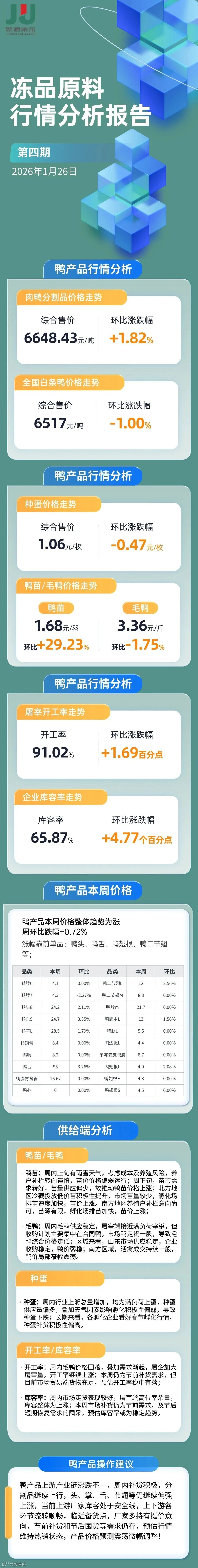 2026第4期冻品原料(鸭鸡猪牛)行情走势分析报告