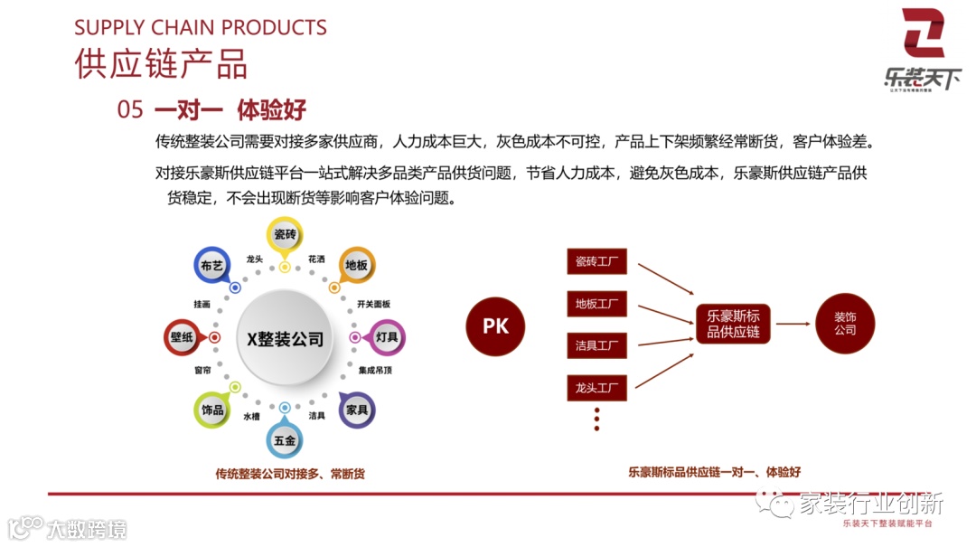 传统整装公司需要对接多家供应商,人力成本巨大,灰色成本不可控,产品上下架频繁经常断货,客户体验差。