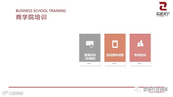 包含整装论坛(总裁班)、总经理特训营、邀请行业大咖及资深人士进行为期几天的讲座及培训,专项培训培养行业精英。