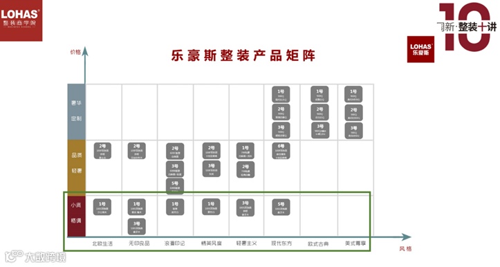 乐豪斯一直提出“像买汽车一样买整装”的理念,就像宝马有3、5、7系一样,乐豪斯也有小资格调、品质轻奢和奢华定制三种系列,另外还有8种风格。整个产品的矩阵基本可以满足所有的改善型客户甚至偏高端的客户的装修需求。
