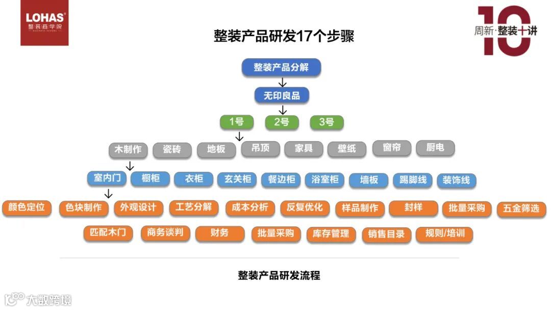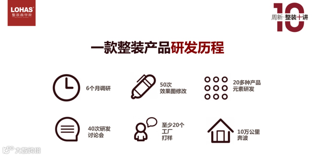 接下来我再讲一下一款整装产品的研发历程,经过6个月调研、40次研发讨论会、50次效果图修改、至少20个工厂打样、20多张产品元素研发、10万公里的奔波,才打造出一款整装产品