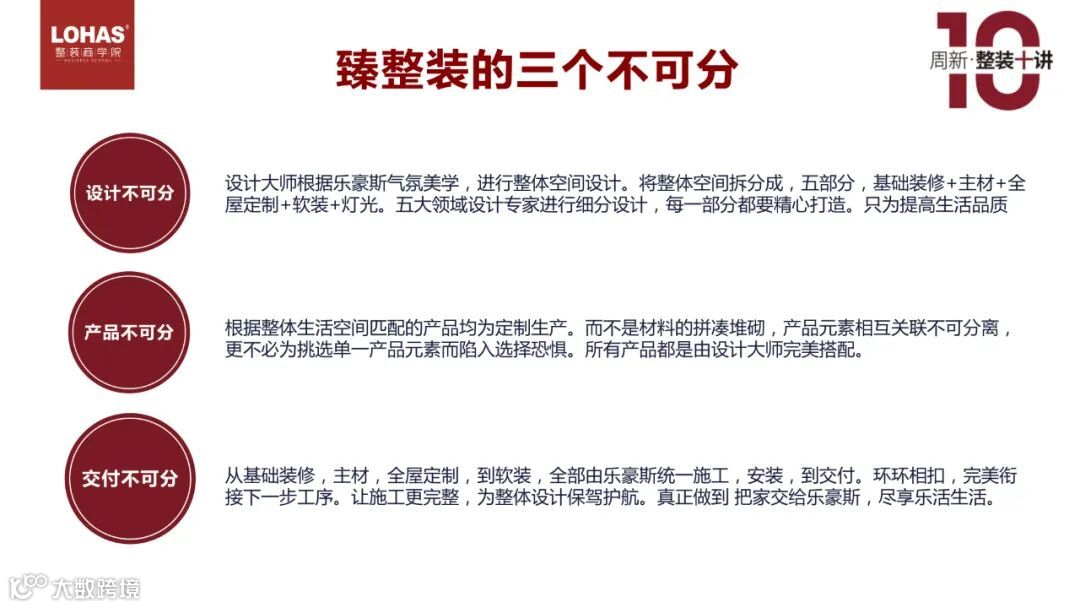 为什么要叫臻整装而不是整装呢,是因为乐豪斯对于整装有自己的定义:整装是以居住者家庭结构、生活方式(人机工程、休闲娱乐、生活动线、收纳需求)、审美偏好(风格)等个性需求为中心,通过基础装修、主材产品、定制家具、软装配饰、家用电器等有机结合,为居住者提供满足居住功能且健康舒适的居家生活的整体解决方案。