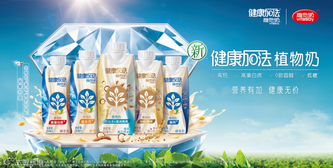 ”上海办公室结合维他奶健康加法新品,推出整体“植物之钻”的升级概念,并打造全新TVC及KV。