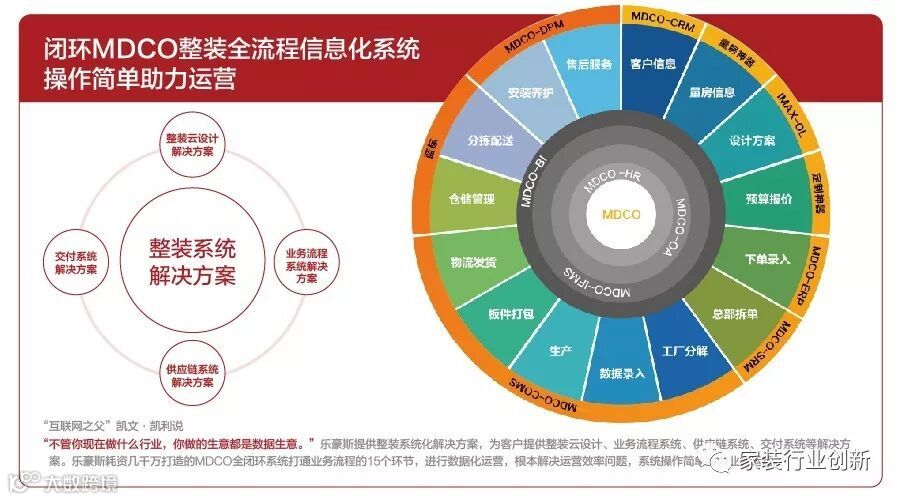 MDCO整装全流程信息化系统,是乐豪斯结合自身12年全品类整装产品供应链,8年做整装的经验,历时5年,千万投入,数十人团队独立整合开发,用于整装销售、设计、报价、工程、采购、仓储、人力资源管理、供应链平台管理、财务管理等贯穿整装15个环节的全闭环系统,解决整装信息化全流程的痛点。