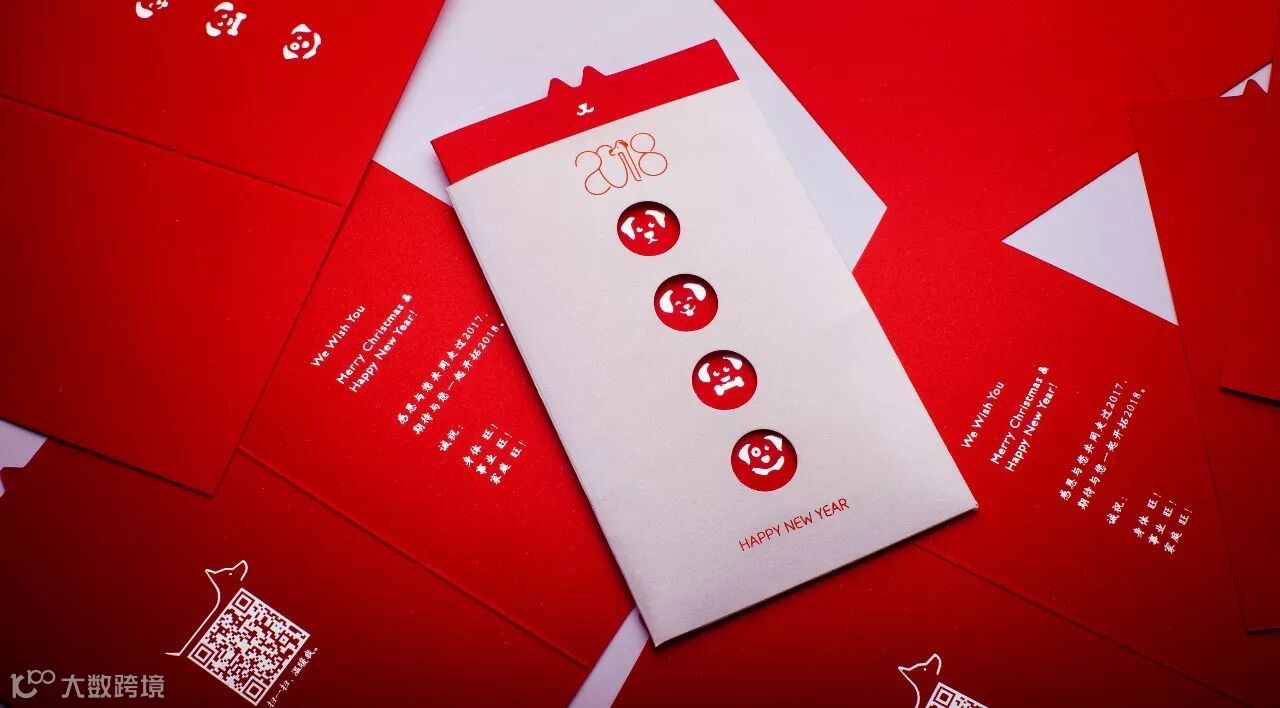 贺卡以狗狗的形象为主要设计元素,分为函套和卡折两部分,素函红笺以突出过年气氛。一只红色小狗脑袋探出素色函套,透过函套的四个圆孔也能窥见四只小狗向外张望,好似趴在窗口盼望主人回家的模样。