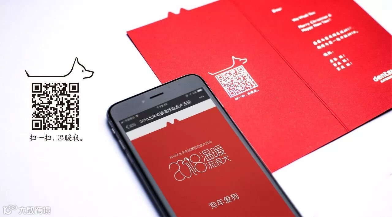 打开红色卡折,右侧为北京电通的祝福语,左侧是“扫一扫,温暖我”的二维码。