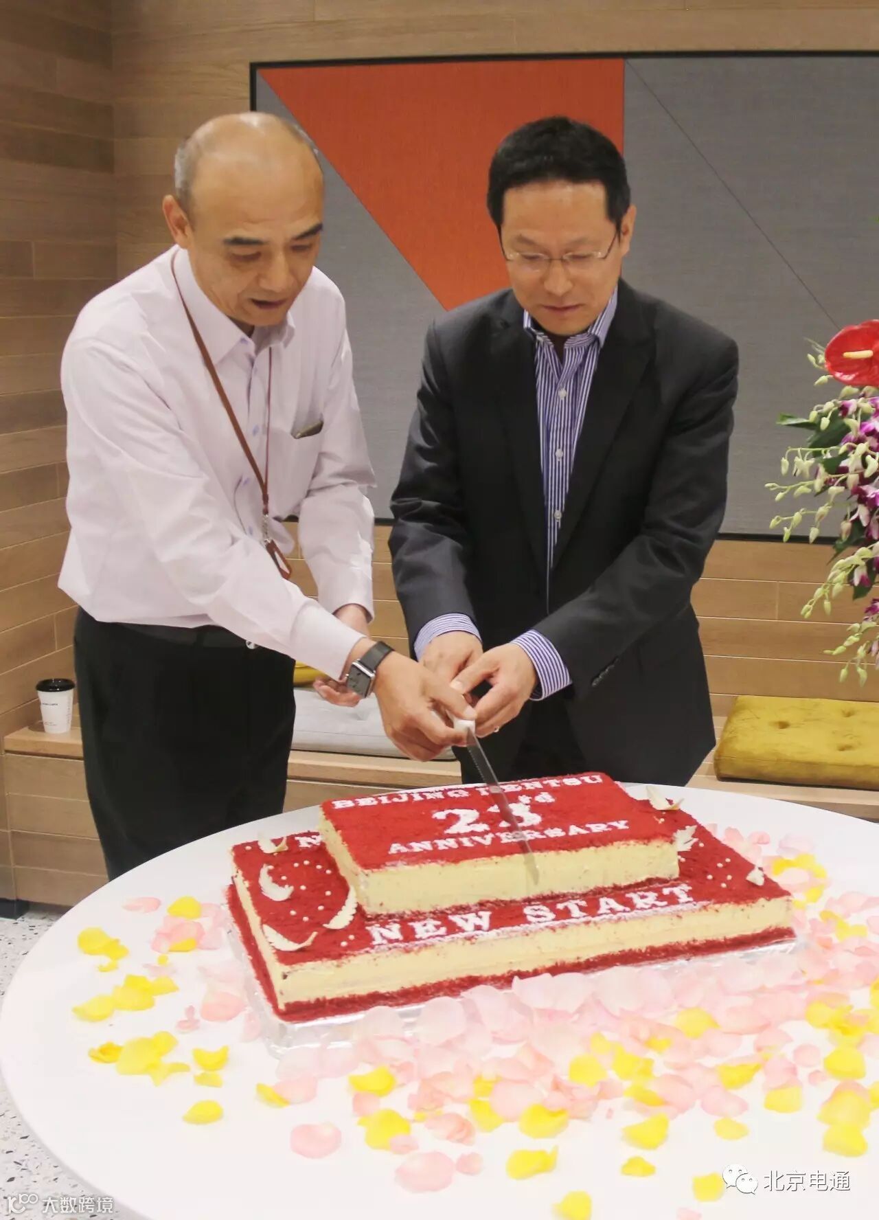 马场大BOSS与副总侯宏民共同切蛋糕,与员工一起纪念这一难忘时刻。公司的成长离不开员工的付出,今后我们将继续努力,再创佳绩,一起加油。
