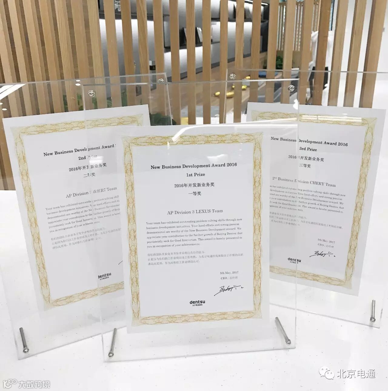 在表彰环节中,马场大BOSS和副总唐谦为北京总部业务开发团队前三名:LEXUS团队、森雅R7团队、奇瑞团队颁发奖状,表彰他们做出的杰出贡献。此外,北京电通能够顺利搬迁到新办公室,离不开搬家团队付出的努力,大BOSS为搬家团队颁发了感谢礼品。