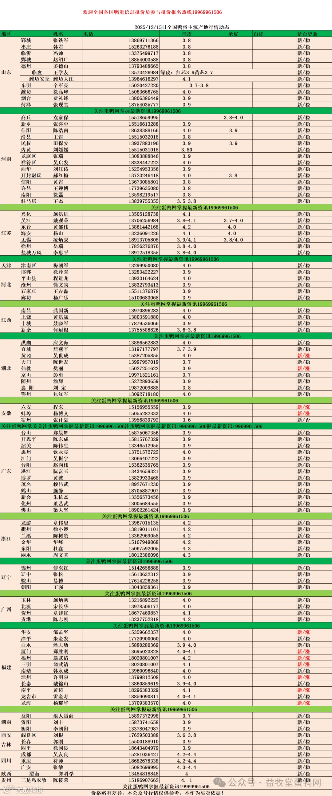 2025年12月15日商品鸭蛋报价 益牧堂水禽信息
