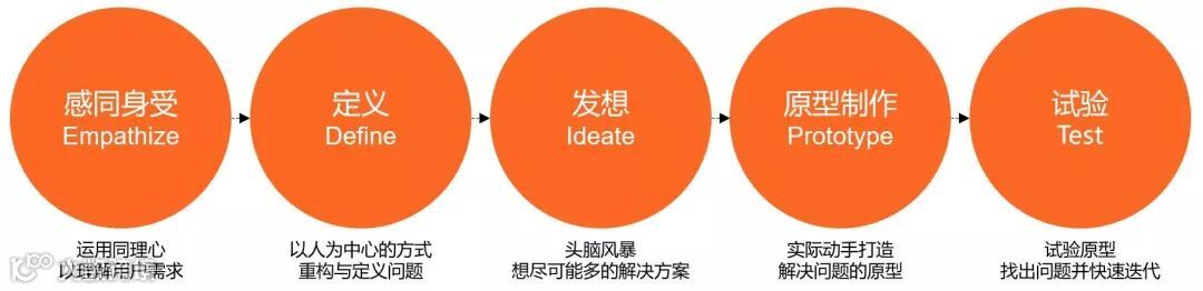 其中,Stanford d.school(中译:斯坦福大学哈索-普拉特纳设计研究学院)提出的设计思维模型在学术界与商业界被广泛使用。d.school将设计思维区分为五个步骤:
