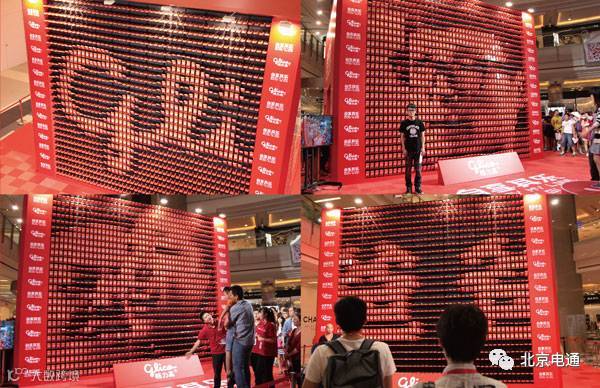 高约5米的“开心互动屏”由1,344个Pocky百奇包装盒组成。当消费者站在互动屏前,不管是肢体动作,还是面部表情,都将被隐藏在互动屏中央的摄像头捕捉,不停翻转的包装盒便能以马赛克的形式呈现相同动作、表情。还可以输入表达情感的文字,在互动屏呈现。通过互动体验,带给每位体验者难忘瞬间。