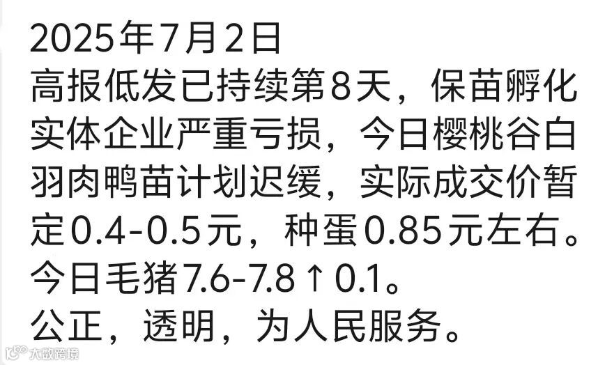 | 25年7月3日白羽鸭苗报价(元/羽) | ||