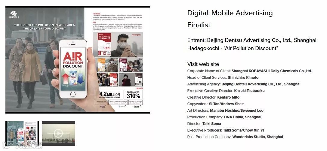近日,北京电通作品“Air Pollution Discount”,入围2017 LIA 伦敦国际广告奖Digital类别。“Picture Book Without Pictures”则入围One Show设计类佳作奖。