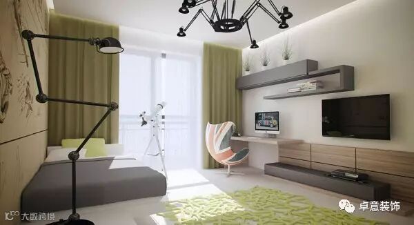 绿色的装饰让这间卧室里有种小清新的感觉